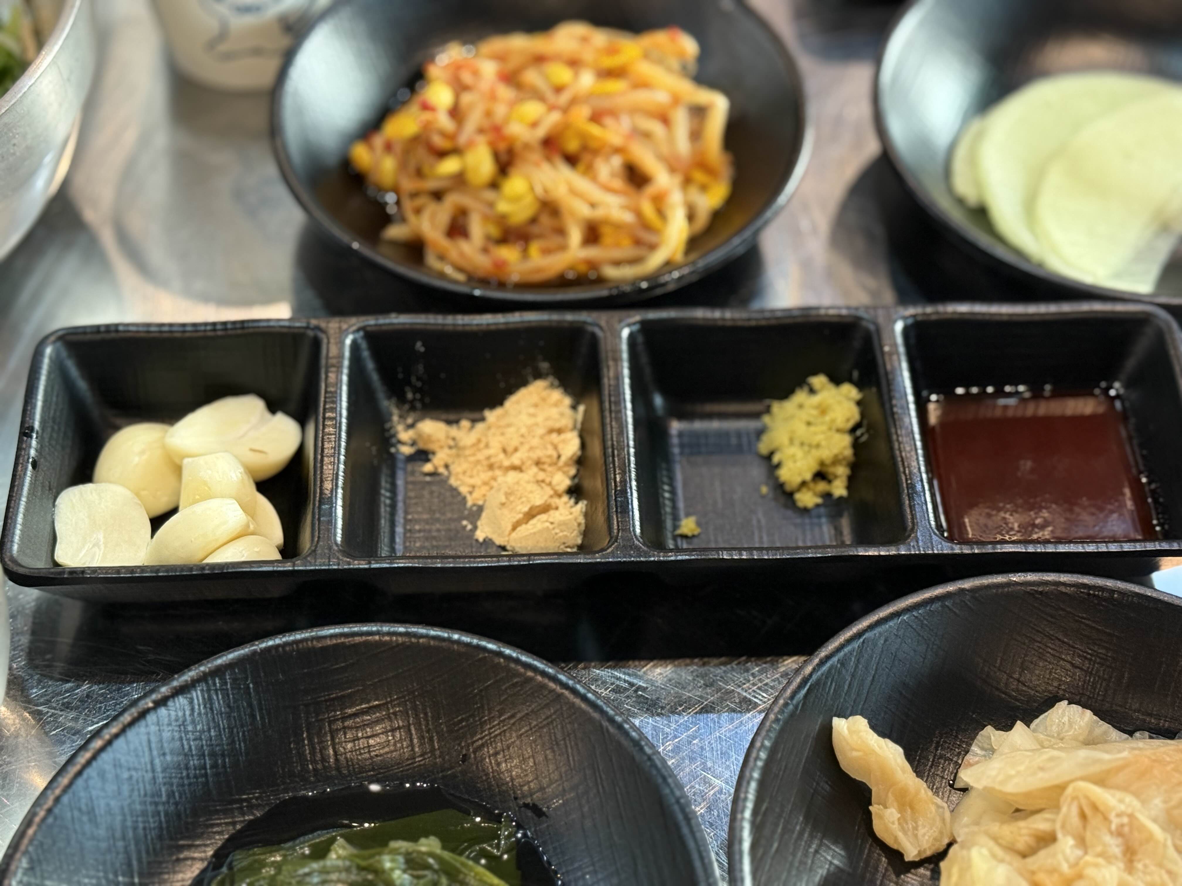 파절이, 양파절임, 쌈무, 콩나물 등 딱 있어야 할 것만 있었고