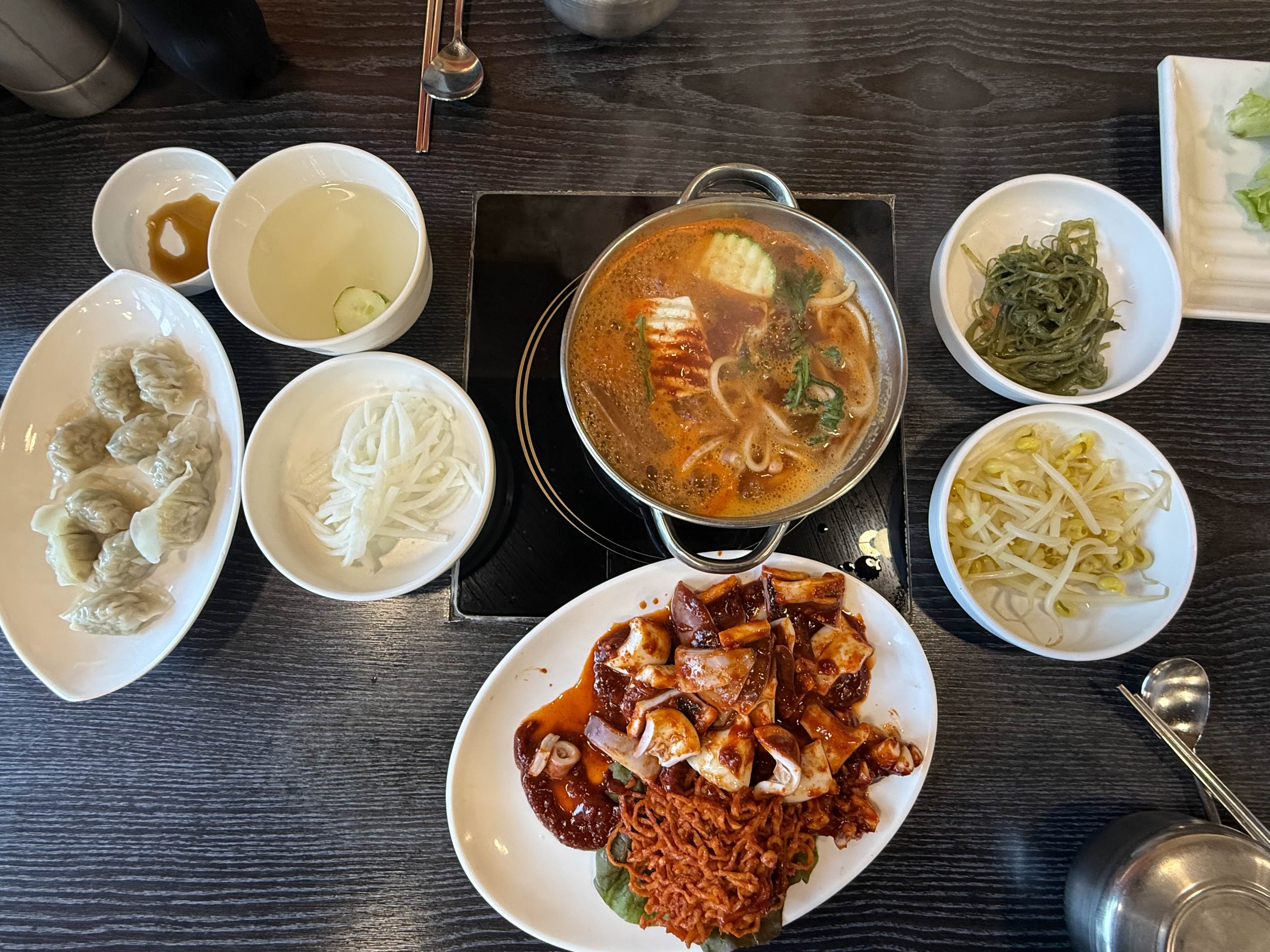 상추, 미역줄기, 콩나물, 무절임, 동치미, 물만두!